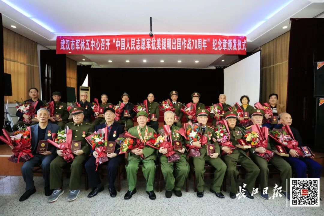 武汉市军休五中心“中国人民志愿军抗美援朝出国作战70周年”纪念章颁发仪式合影。柯志刚 摄