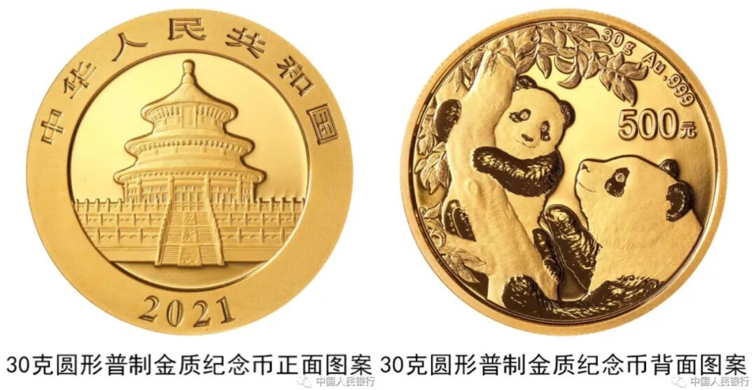 ◇ 10月30日,中国人民银行将发行2021熊猫纪念币一套12枚,其中熊猫普制金银纪念币6枚、熊猫精制金银纪念币6枚,均为中华人民共和国法定货币。