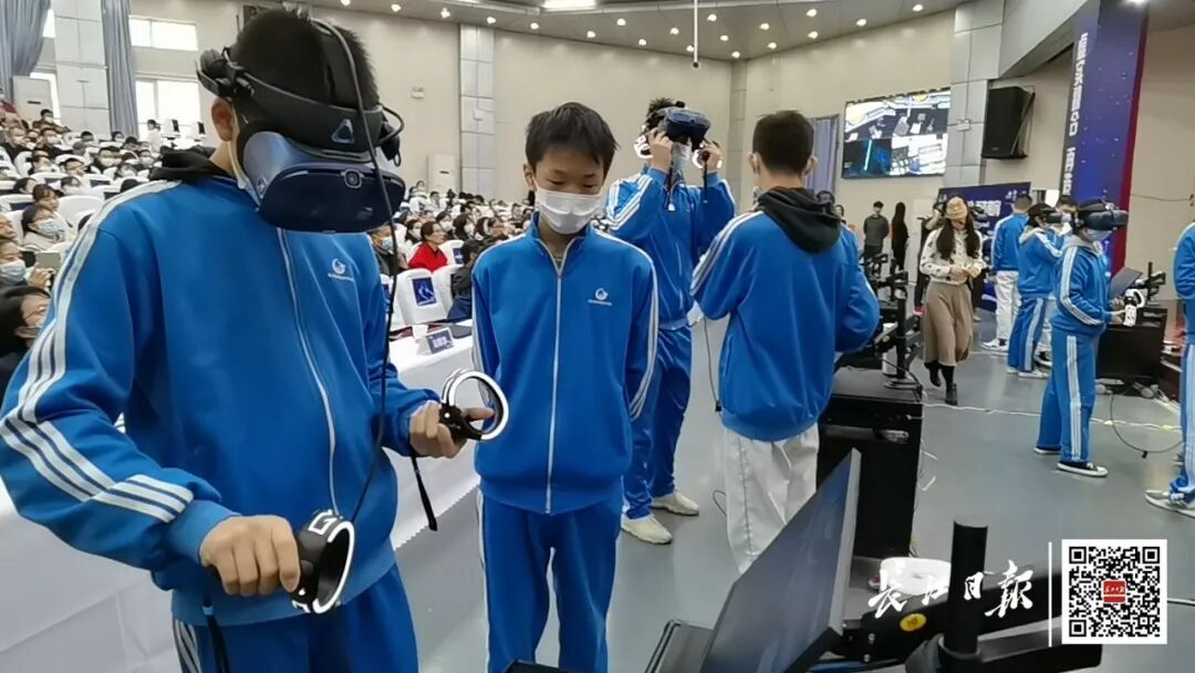 学生利用VR虚拟实验环境完成化学实验。记者杨幸慈 摄