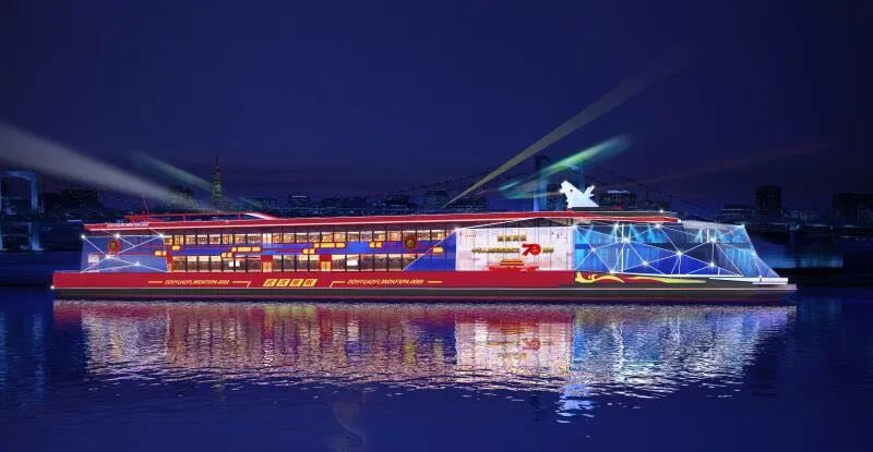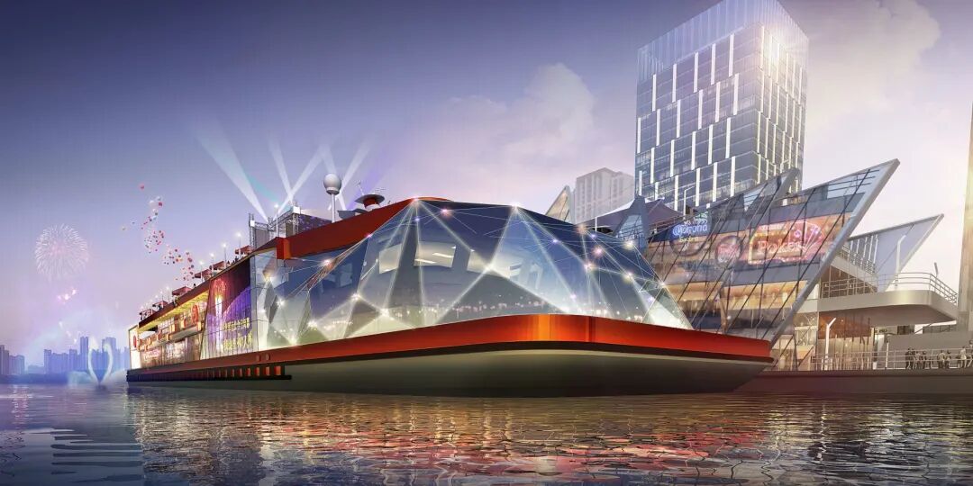 在外观上,“古琴号”和“知音号”的复古风格不同,它的上层建筑采用全玻璃幕墙,首部的玻璃呈现出不规则多面体的棱角,科技感十足。白天坐在船内,视线将无遮挡,仿佛漂浮在江上。夜间航行时,通过玻璃幕墙及露天甲板,游客将以全新方式观看到两江四岸的璀璨灯光秀和城市星空。