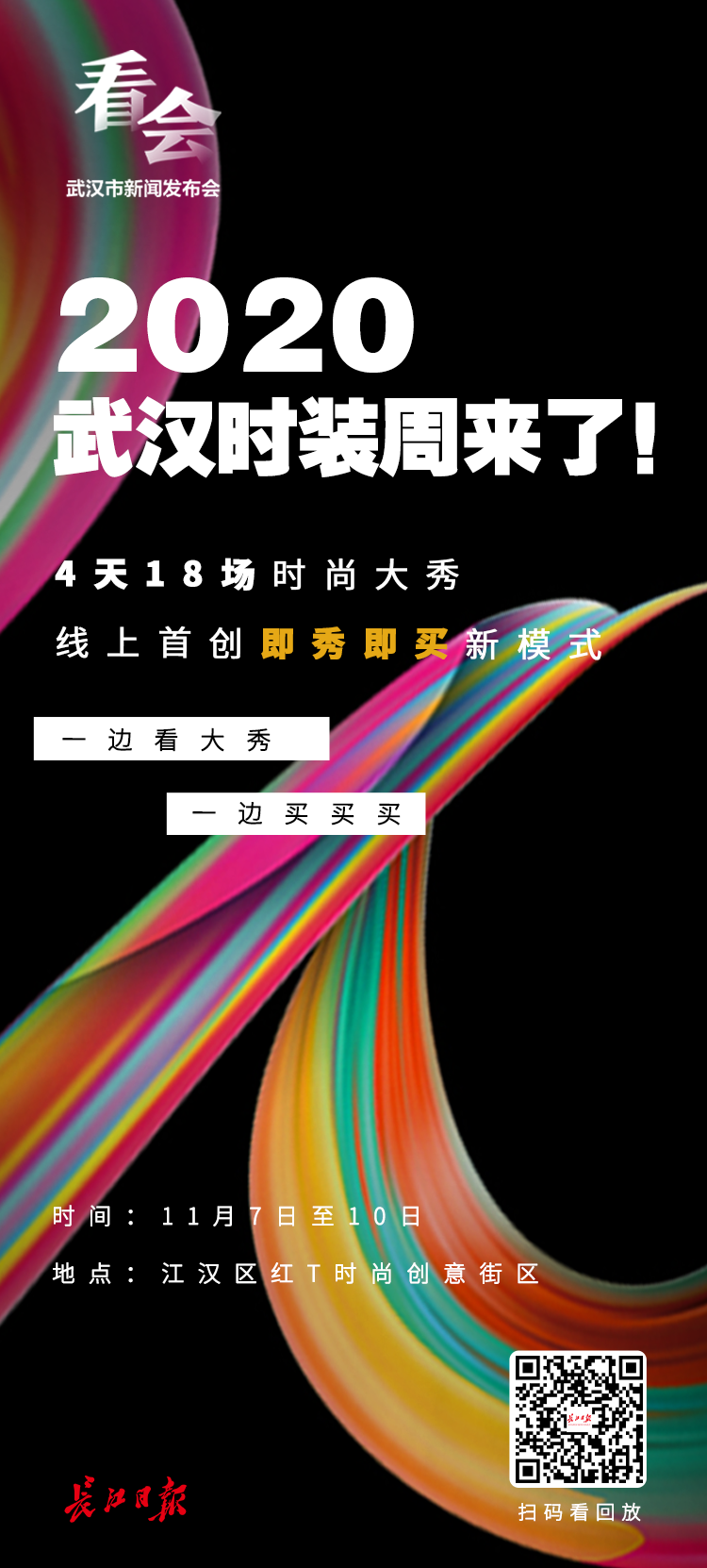 ◇ 11月7日至10日,2020武汉时装周将在江汉区红T时尚创意街区举办,4天18场时尚大秀惊艳上演,同时线上首创即秀即买新模式,观众可一边看大秀一边买买买。