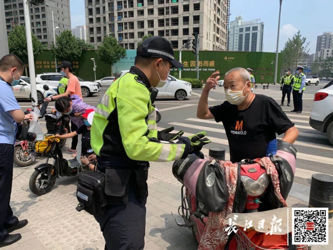 交警正在检查宣传“一盔一带” 长江日报记者尹勤兵 姚传龙 摄