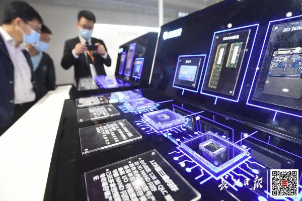光博会上,紫光集团展出的2020年上半年长江存储发布的全球首款128层3D NAND闪存。记者周超 摄