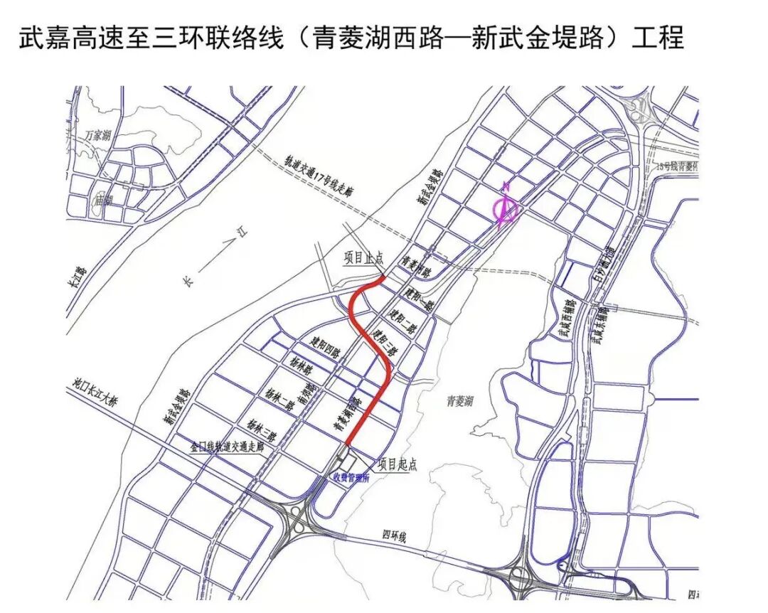 武嘉高速至三环联络线(青菱湖西路-新武金堤路)工程示意图。