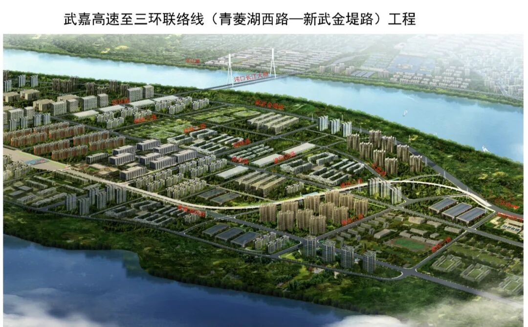中铁大桥局七公司该项目书记董喜兵介绍,武嘉高速至三环联络线(青菱湖西路-新武金堤路)位于洪山区青菱地区,是武汉市重点工程。