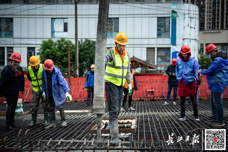 友谊大道(武车路—宏茂巷)高架第一联混凝土箱梁开始浇筑。 记者任勇 摄