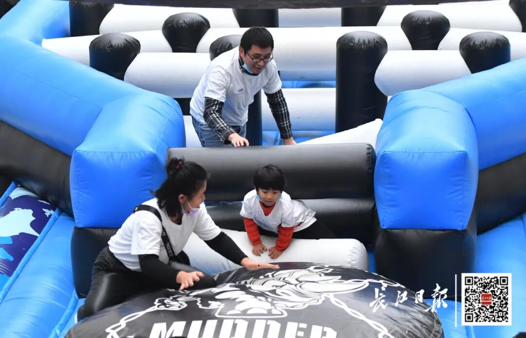 亲子障碍赛上的一家三口。记者喻志勇 摄