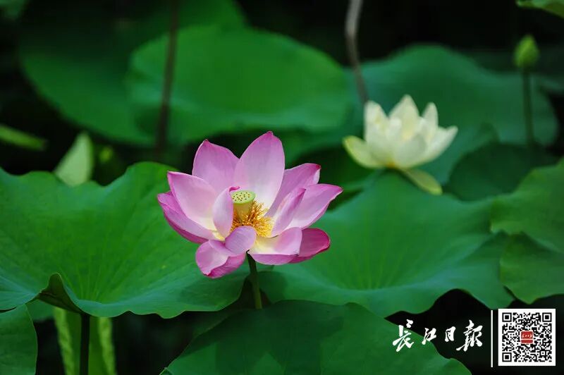 ◇ 长江一桥下的汉阳江滩,荷花吐芬芳,市民在沿江漫步就可以欣赏荷花。