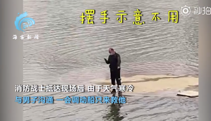近日,湖北随州一男子因涨潮被困河中央。消防部门对男子说待会调动船只来救他,男子听后一阵思索,自己跳入了河中,蹚水上了岸,所幸河水不深。男子说:我不想浪费公共资源,不想麻烦你们。