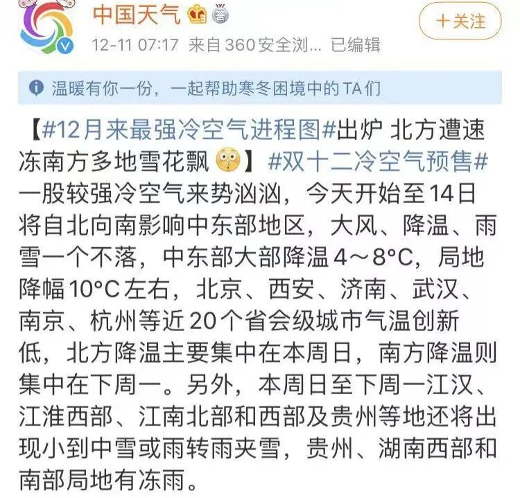 大家一定要注意防寒保暖