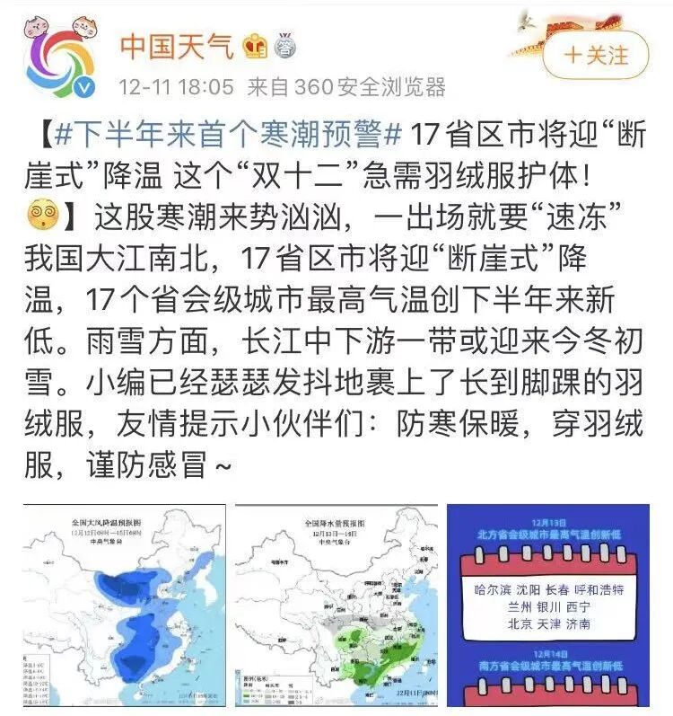 伴随而来的是雨雪、降温