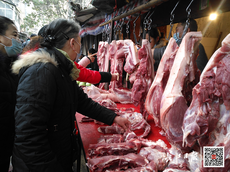 ◇ 气温下降,心急的武汉人开始准备腌鱼腌肉,七里庙菜场的一家网红香肠店一天加工2000斤肉。