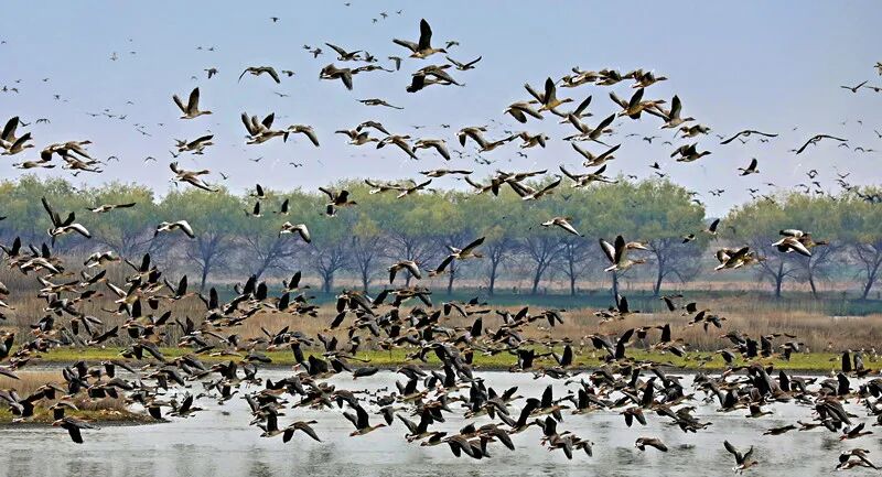 ◇ 小天鹅、大雁、白皮鹭等30多种国家重点保护鸟类,陆续飞来东西湖区柏泉府河湿地越冬。