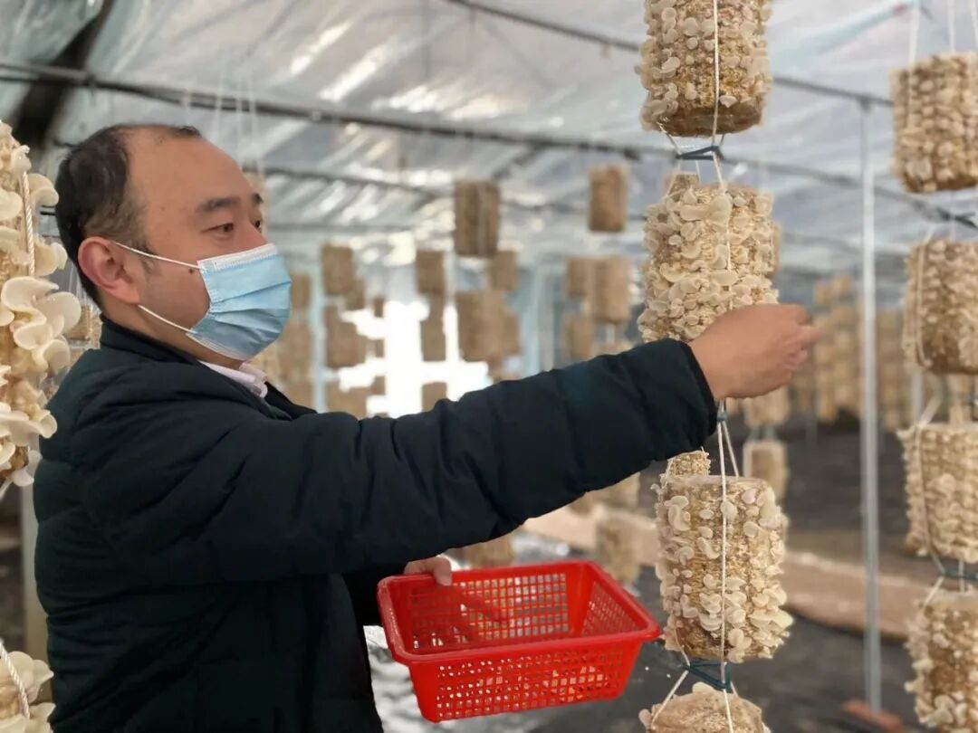 工作人员在采摘玉木耳。记者蔡欣星 摄