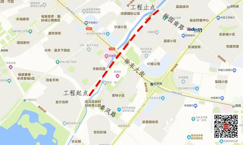 沙湖大道(秦风路—杨园南路)跨徐东大街立交工程区位图。