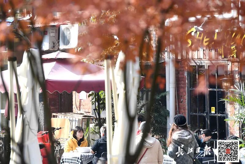 冬日暖阳下,人们散坐在户外的咖啡桌前。 记者周超 摄