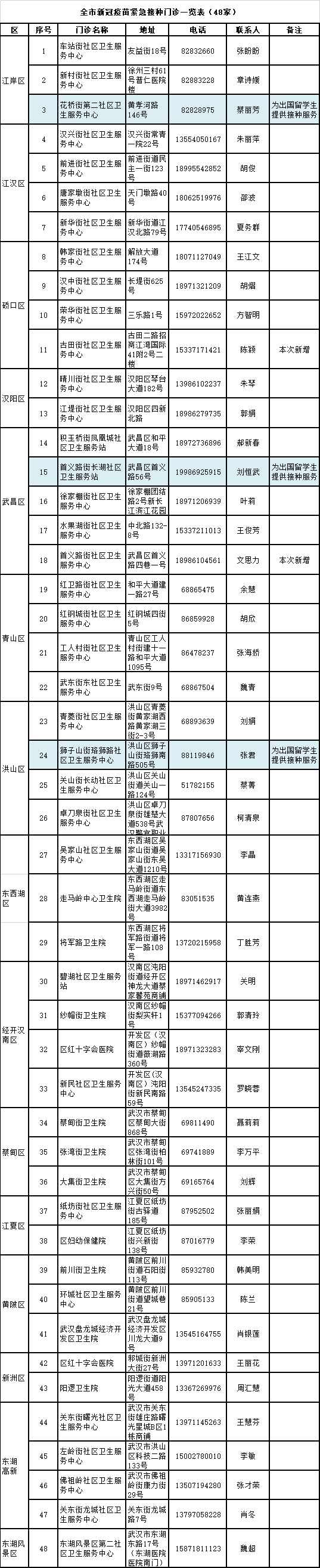 卫健委:全市15个区、48家指定的预防接种门诊名称和地址——