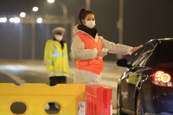 疫情防控期间,华雨辰在二七长江大桥上值守测温。