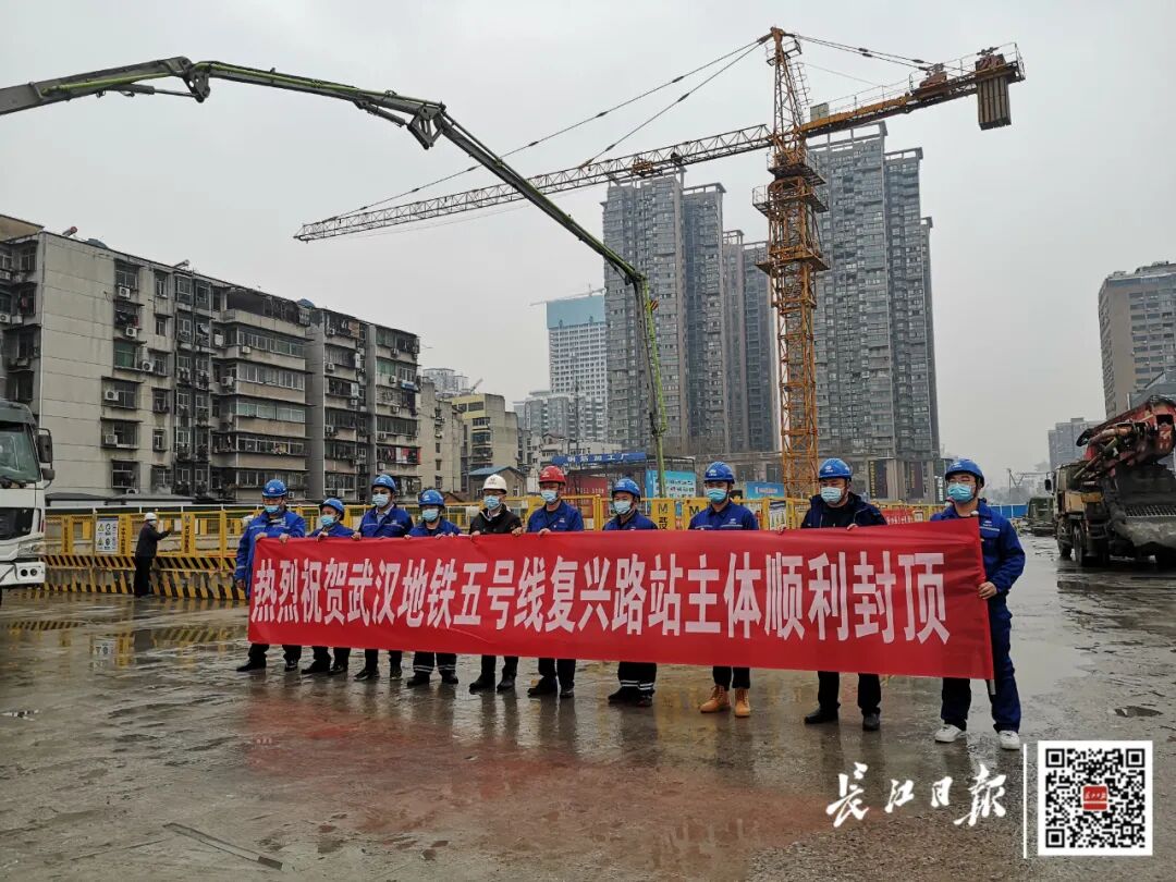 ◇ 22日,武汉地铁5号线复兴路车站最后一块顶板混凝土完成浇筑,标志着全线25座地铁车站全部实现车站封顶。