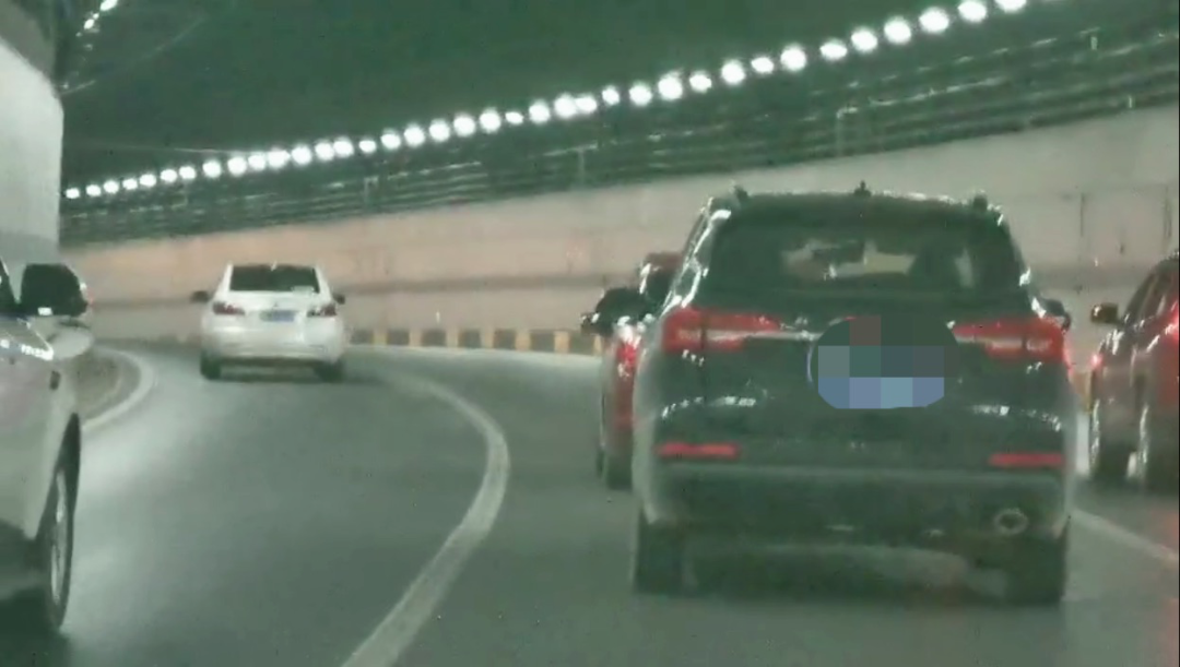 中间车道因红色轿车慢行挡道车速仅二三十公里。记者夏晶视频截图