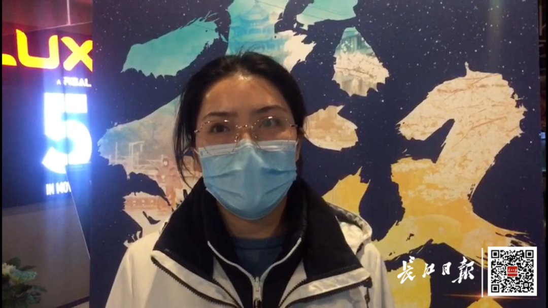 女医护人员在武汉中影逸幕影城看完影片后接受采访。记者万建辉 摄