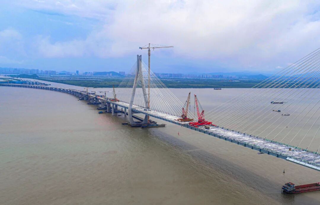◇ 8日,由在汉央企中铁大桥局承建的珠海洪鹤大桥首座斜拉桥零误差完成钢梁合龙,为大桥在2020年珠海国际航展前通车奠定基础。