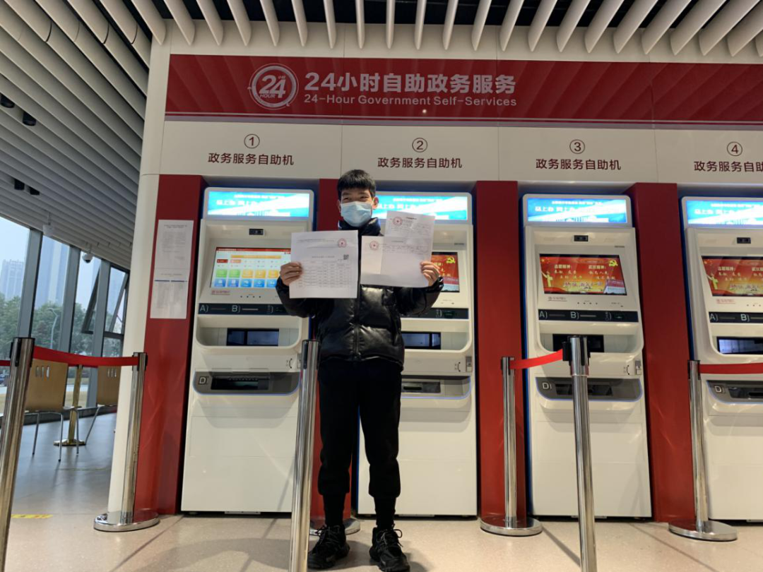 黄冈市民唐先生在武汉自助打印出个人参保证明。市政务服务和大数据管理局 供图