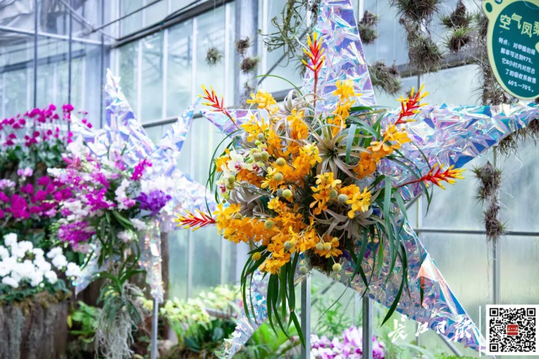 用新型材料“不锈钢波纹板”布置的热带兰花展品。中科院武汉植物园供图