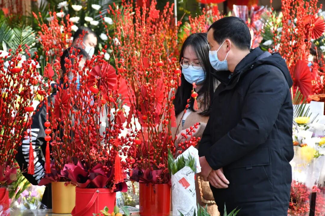 ◇ 6日下午,武汉花鸟市场格外热闹。迎春花市“红红火火” ,市民留汉过年选择买鲜花迎新年,洋溢着浓浓的过年氛围。