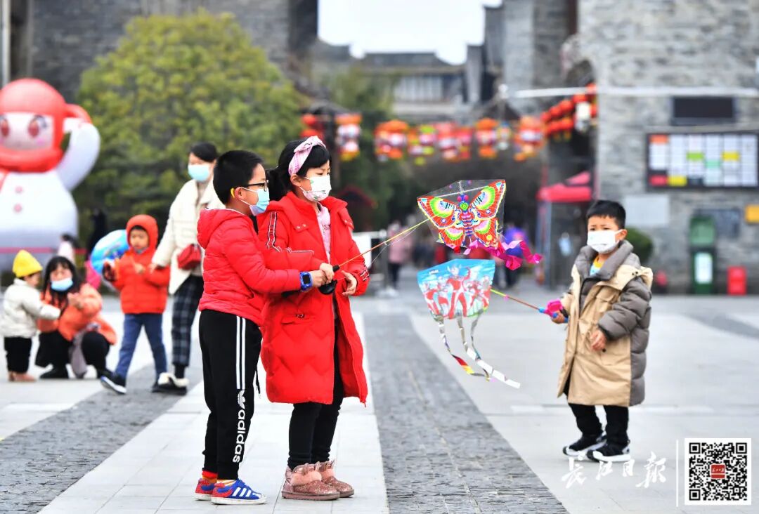 6日,市民游客在园博园汉口里游玩,街区洋溢着喜庆热闹的节日氛围。记者喻志勇 摄