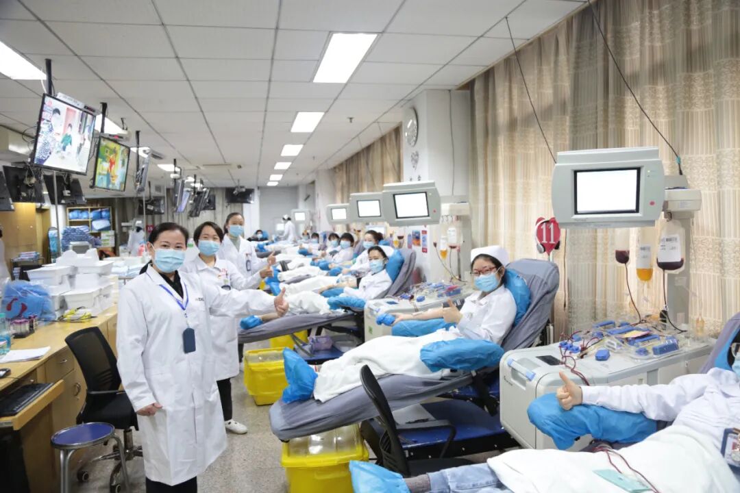 ◇ 一直负责采血的武汉血液中心护士们集体献血,为临床患者送上新年礼物。