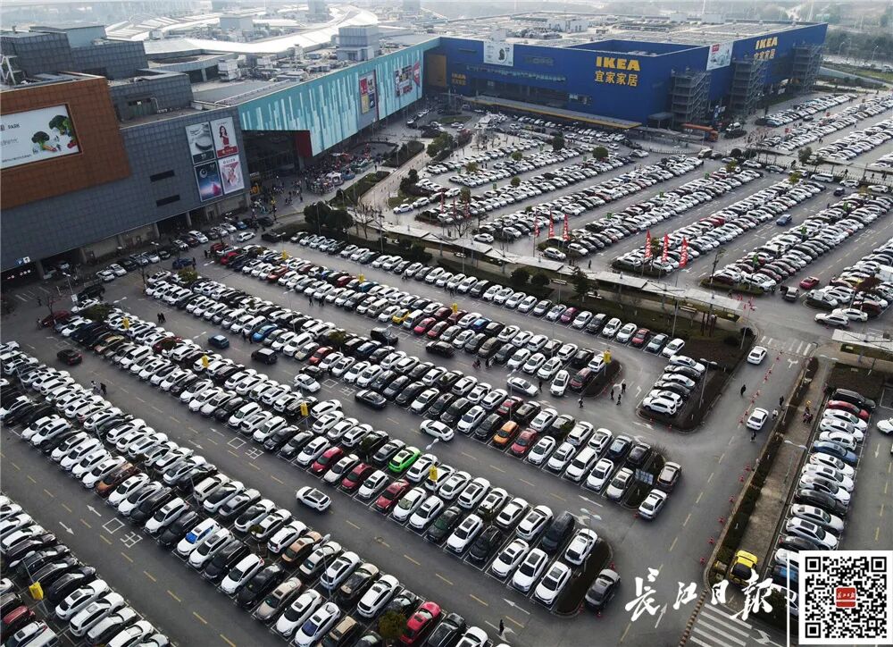 大年初二,宜家的停车场停满了前来购物市民的私家车。记者何晓刚 摄