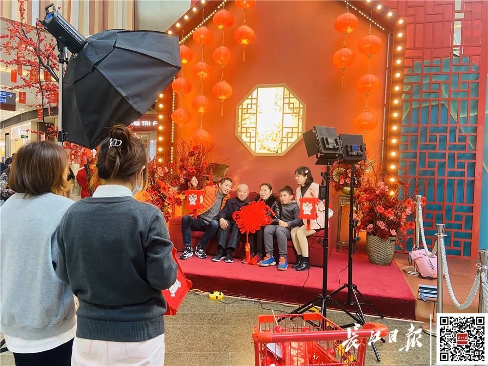 武汉荟聚中心内,逛买之余,还为市民安排上了新春第一张“全家福”合照。
