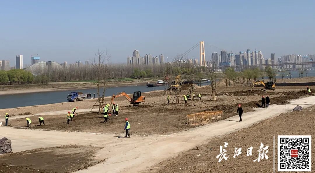 20日,洪山江滩建设现场,机器轰鸣,人机交错。记者王怡人 摄
