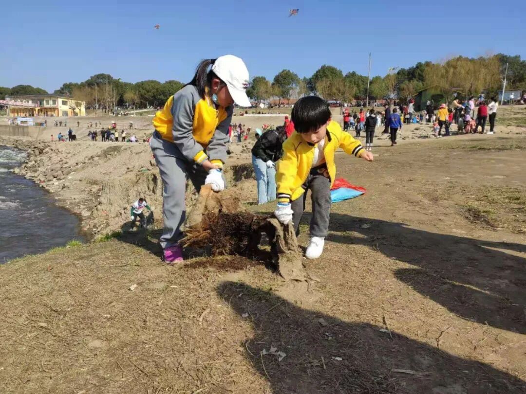 ◇ 新洲区邾城街组织300多名志愿者在举水河边,一边捡垃圾,一边劝导游人爱护环境。