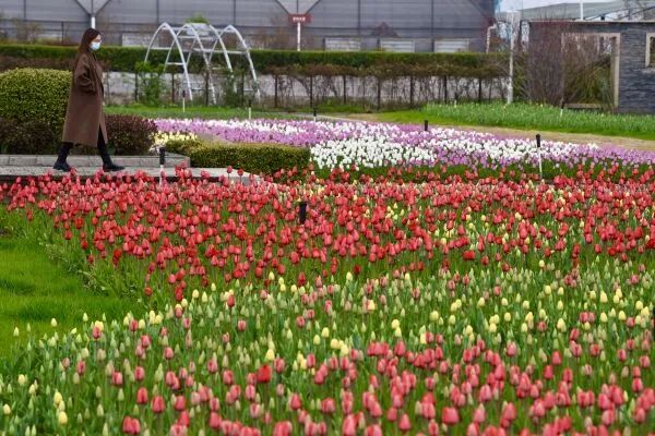 ◇ 东西湖郁金香主题公园春花展元宵开幕,150万株郁金香拼出“一江连心”图。