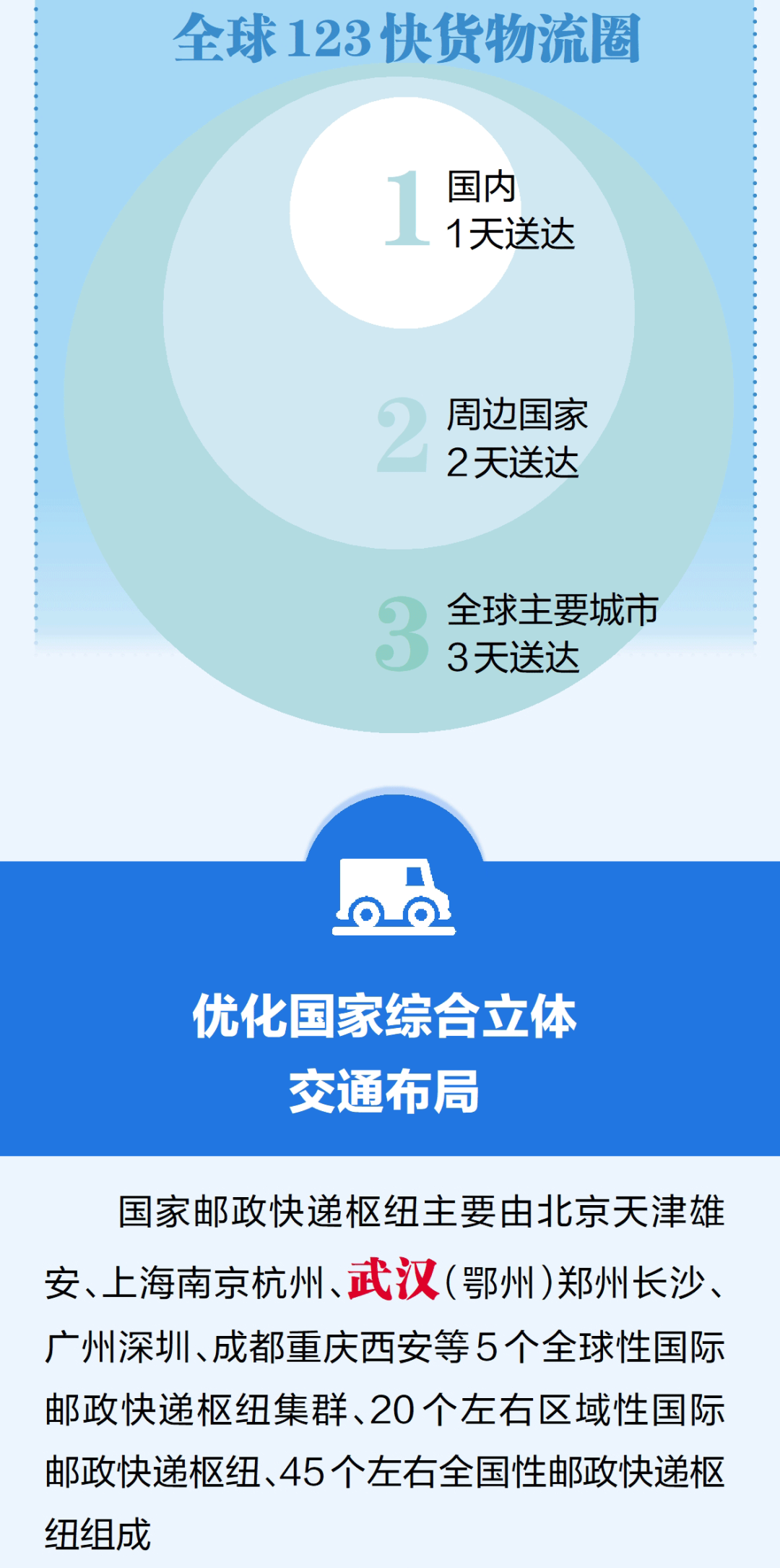 《纲要》提出,到2035年,基本建成便捷顺畅、经济高效、绿色集约、智能先进、安全可靠的现代化高质量国家综合立体交通网,实现国际国内互联互通、全国主要城市立体畅达、县级节点有效覆盖,有力支撑“全国123出行交通圈”和“全球123快货物流圈”。