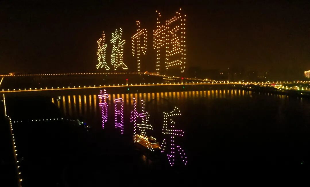 ◇ 长江夜空中,千架无人机编队组成“致敬巾帼 节日快乐”字样,为江城女性送来祝福。这样的无人机秀有望成为夜游武汉的新常态。