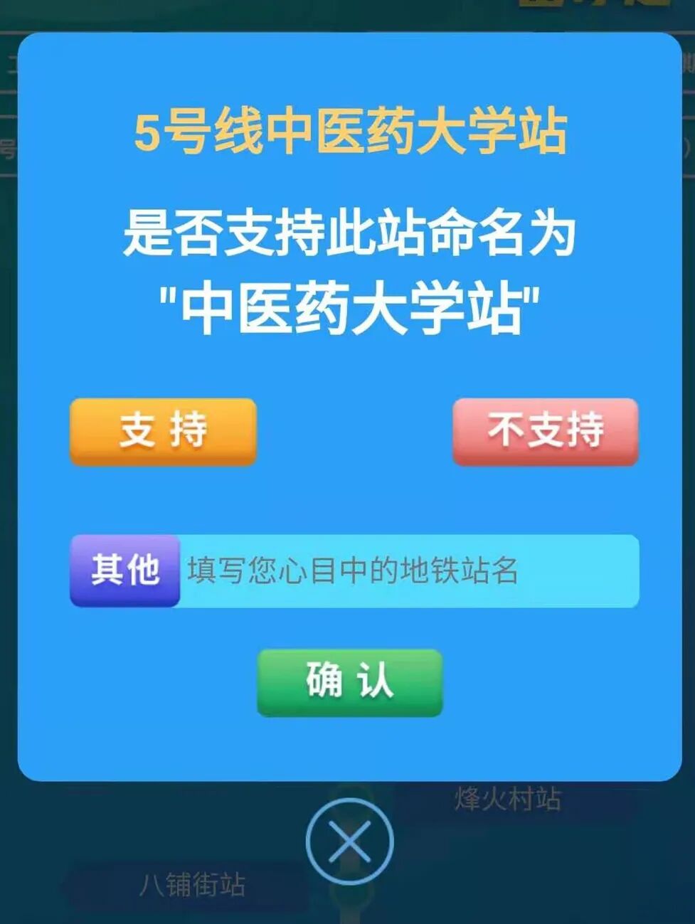 当天下午,长江日报-长江网记者打开该投票页面见到,每条地铁线的站名一一公布,点击单个站名会出现“支持”“不支持”的选项,如“不支持”,可以在“其他”栏目内填写自己心目中的地铁站名,方便网友进行投票和提建议的操作。