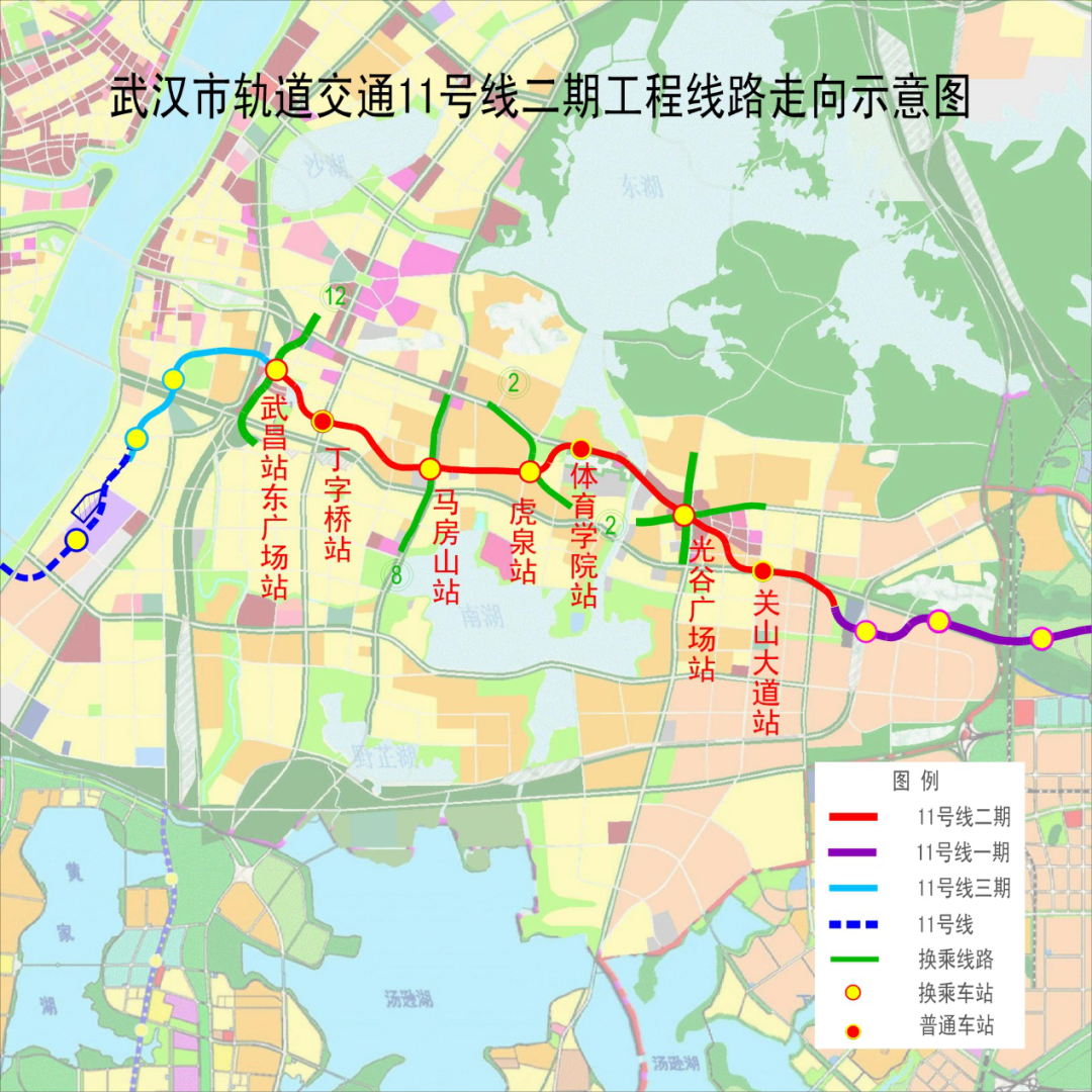 关山大道站、光谷广场站、体育学院站、虎泉站、马房山站、丁字桥站、武昌站东广场站。