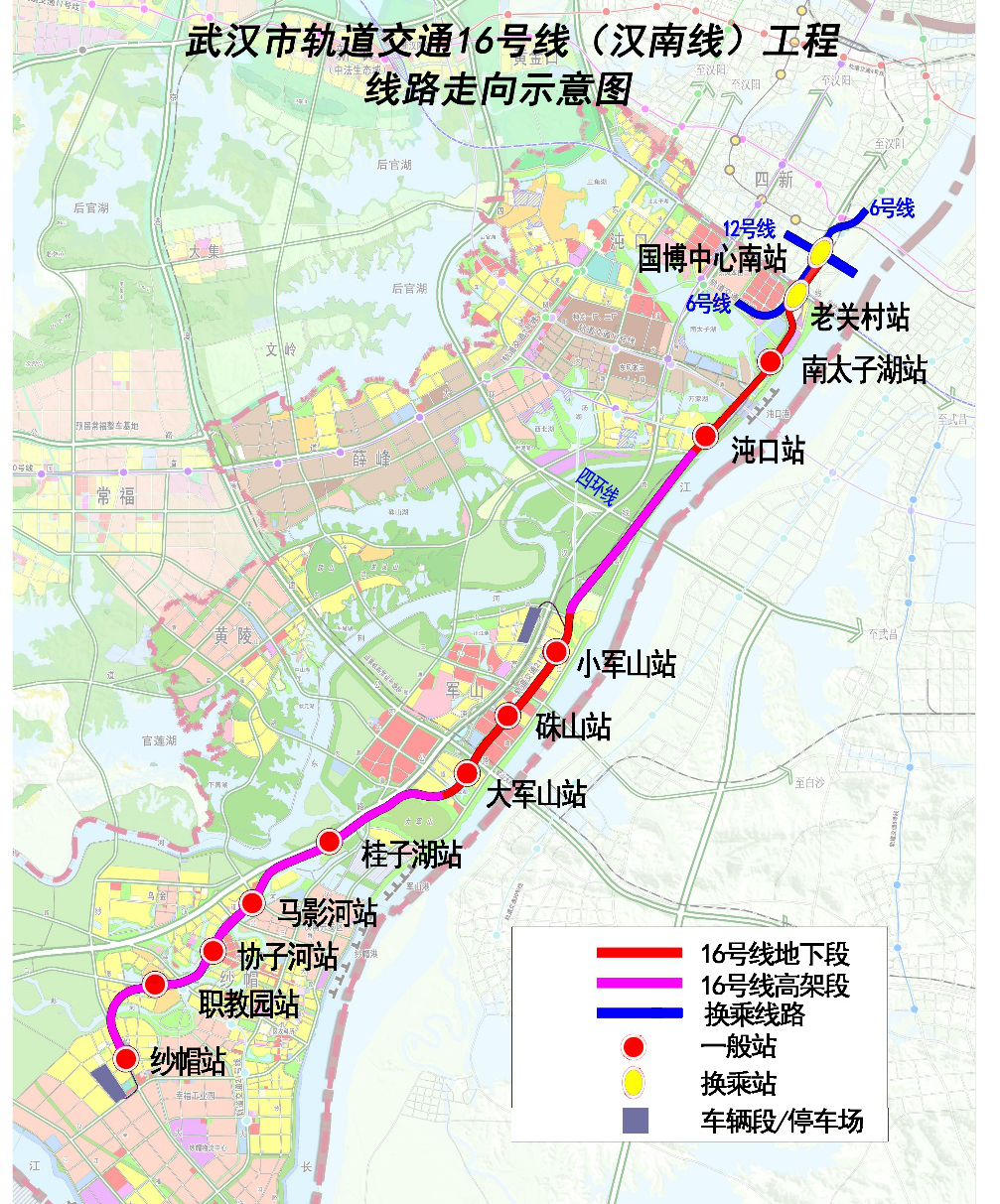 纱帽站、职教园站、协子河站、马影河站、桂子湖站、大军山站、硃山站、小军山站、沌口站、南太子湖站、老关村站、国博中心南站。