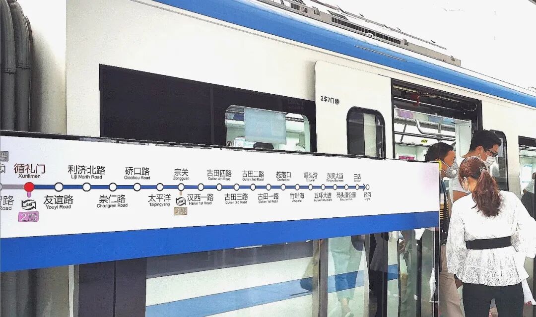 ◇ 1号线循礼门站站台有了新变化,屏蔽门上张贴了醒目的线路图。