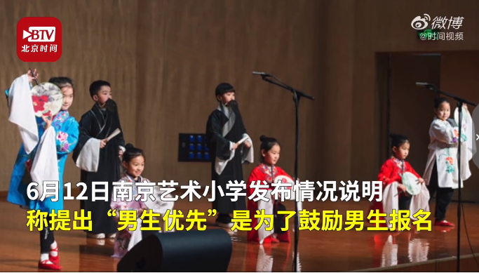 近日,南京一艺术小学招生公告中“男生优先”的招生原则被指性别歧视。12日,校方回应称,该校是所少儿艺校,历年招生男生报名不足,男生短缺影响节目编排。后面的招生工作中将严格遵守公平公开公正原则,择优录取。你怎么看?