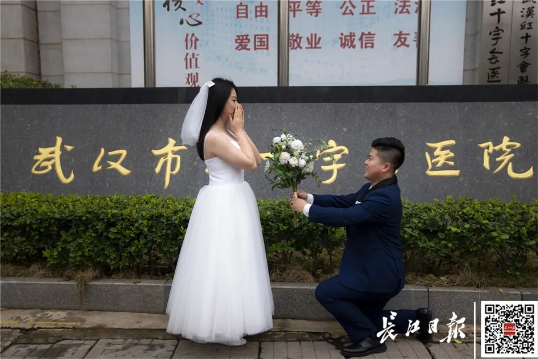 为什么选择武汉拍婚纱照?他们解释,武汉是“战斗过的地方”,是“永远的第二故乡”,而让他们相识的红十字会医院是“爱情的起点”,他们希望,能把最值得纪念的地方用影像记录下来。