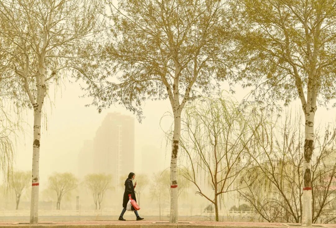 我国北方地区遭遇沙尘天气,图为银川街头。新华社