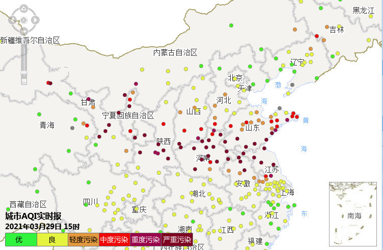 2021年3月29日15时全国空气质量实时报。武汉市生态环境局提供