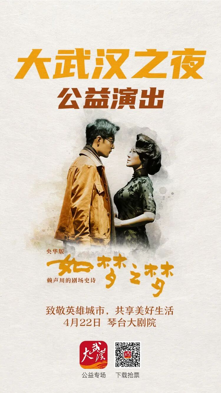 ◇ 一票难求的话剧《如梦之梦》公益赠票啦。4月22日,“大武汉之夜”——《如梦之梦》公益专场即将开演。