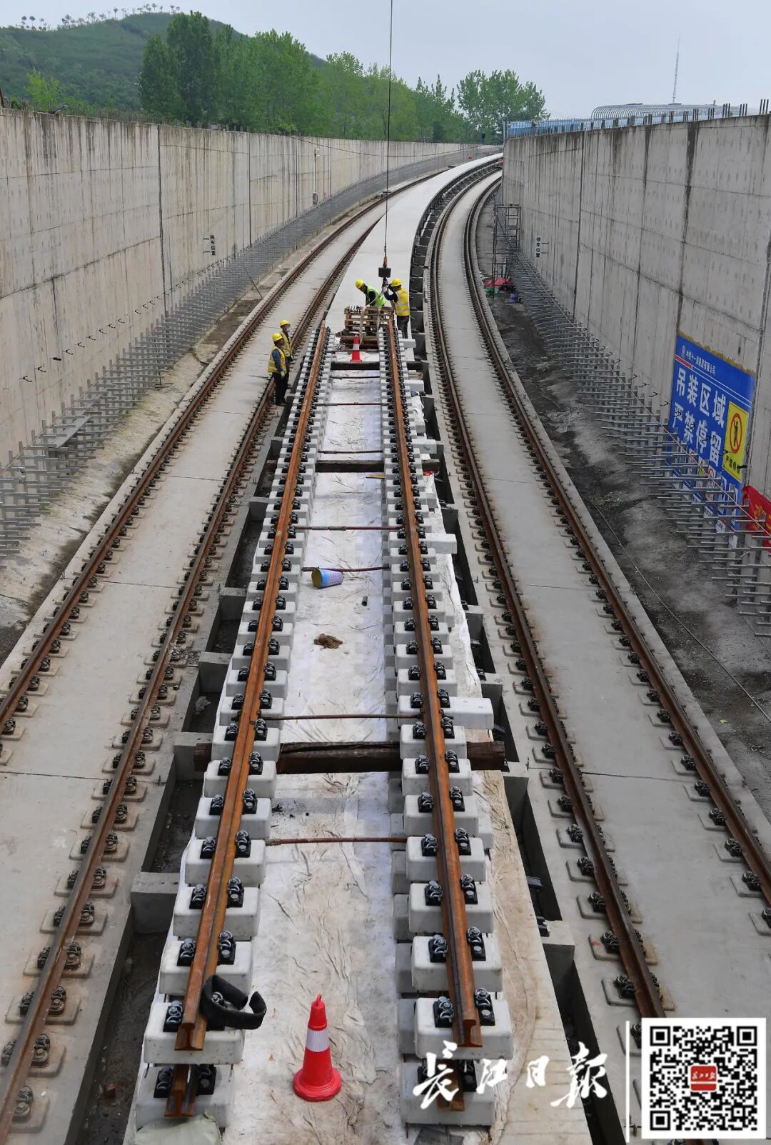 截至目前,区间靠近川江池一侧的铺轨施工全部完成,仅剩下沌口段这一部分,铺轨进入“施工冲刺期”。
