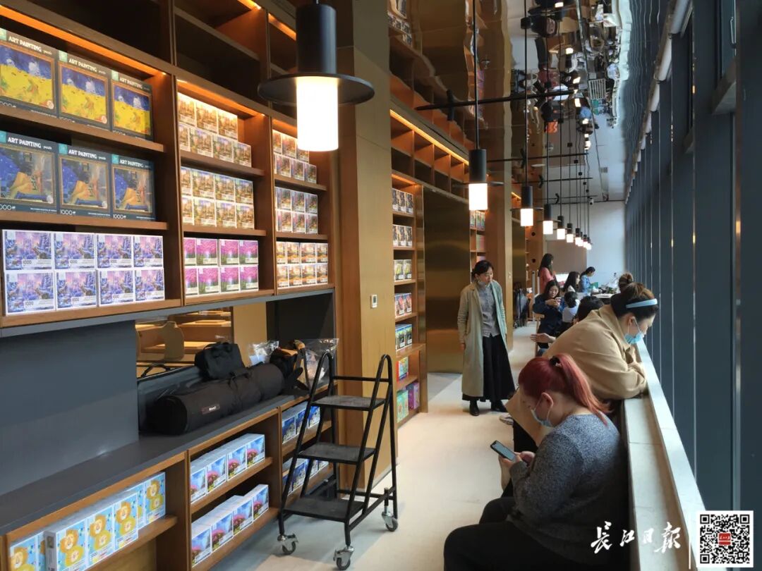 读者阅读长廊,窗外是江汉路街景。记者万建辉 摄