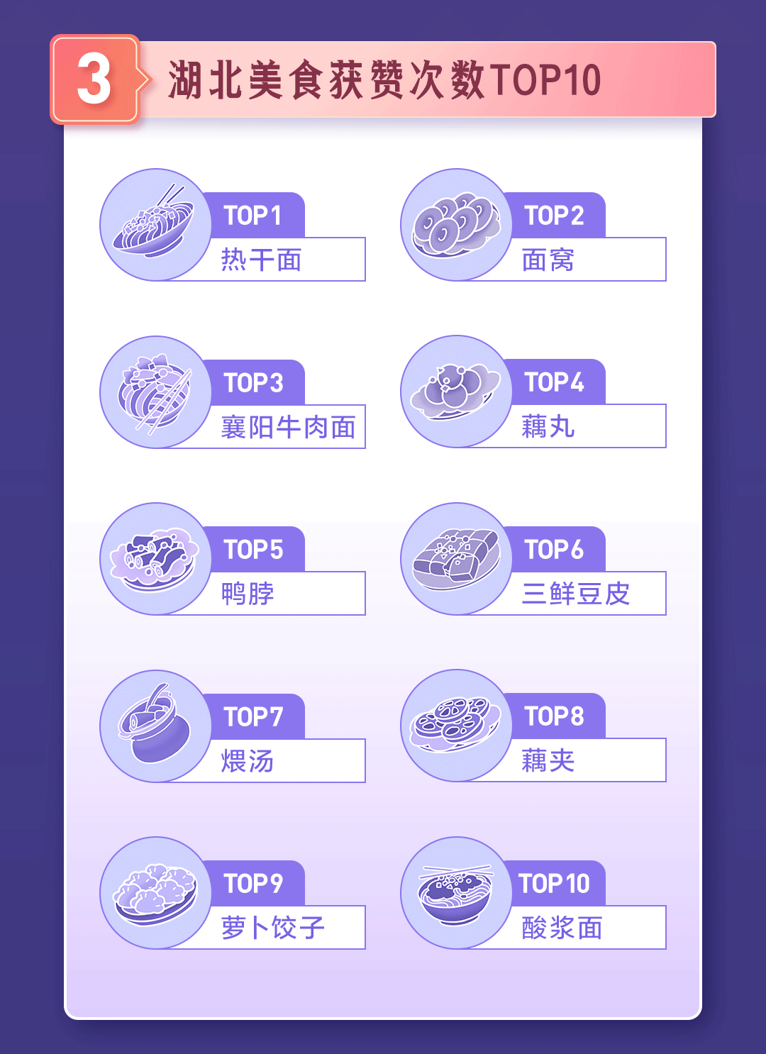 以鲜香微辣、兼收并蓄风格著称的湖北美食,一直让全国吃货们欲罢不能。报告显示,热干面、面窝、襄阳牛肉面成为抖音上获赞最多的湖北美食。